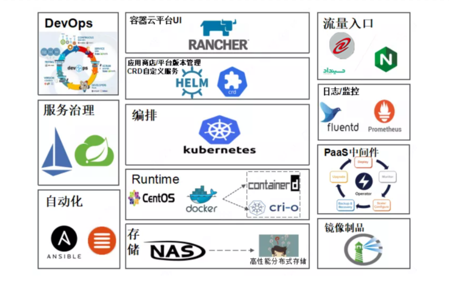 ?分層架構:以Kubernetes為核心組件的PaaS平臺,整合EFK,Prometheus,Harbor等附加組件,PaaS服務分為三個平面,分別為管理平面、控制平面、計算平面。