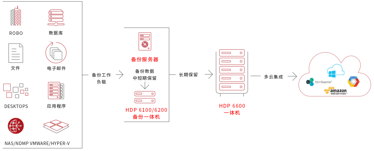 • 與HDP備份一體機及軟件深度集成 :數分鐘內即可部署完畢數據保護。深度集成可提供一致的端到端長期數據保留和保護